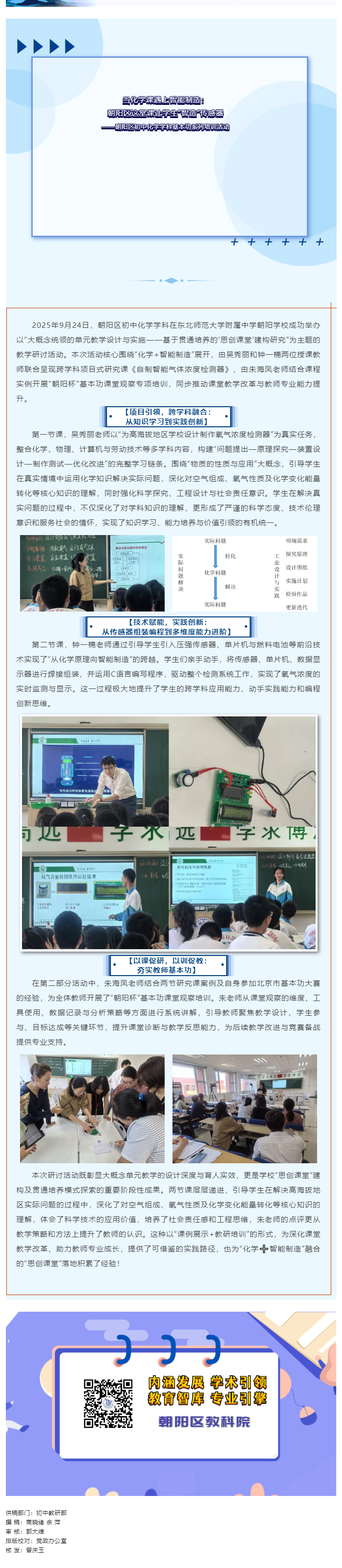 当化学课遇上智能制造:朝阳区这堂课让学生“智造”传感器——朝阳区初中化学学科基本功系列培训活动