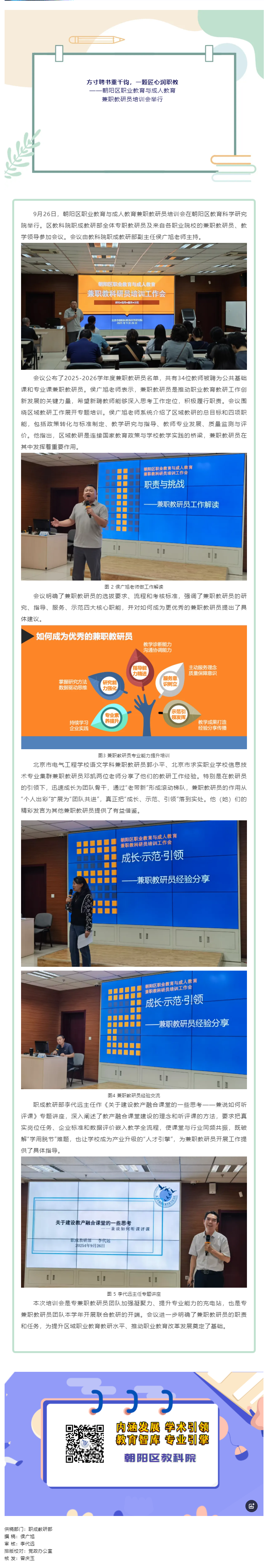 方寸聘书重千钧,一颗匠心润职教——朝阳区职业教育与成人教育兼职教研员培训会举行