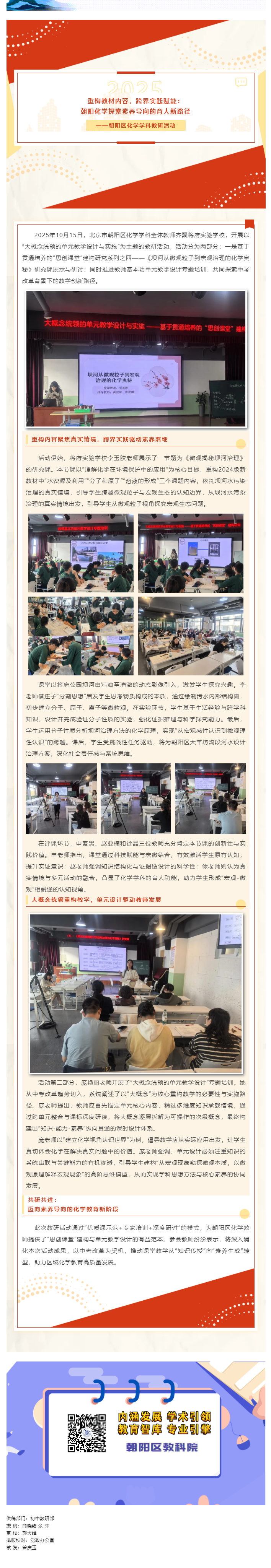 重构教材内容,跨界实践赋能:朝阳化学探索素养导向的育人新路径——朝阳区化学学科教研活动