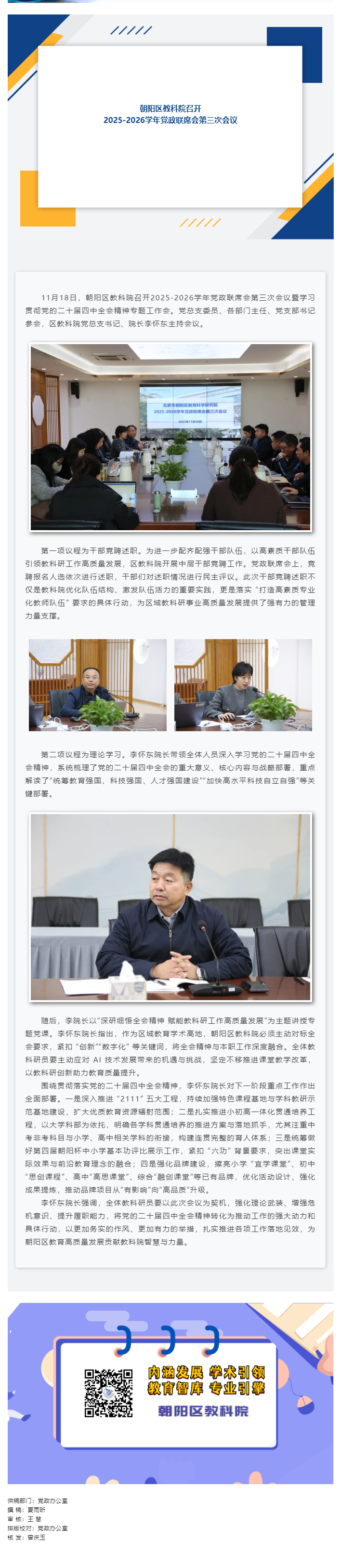 朝阳区教科院召开2025-2026学年党政联席会第三次会议