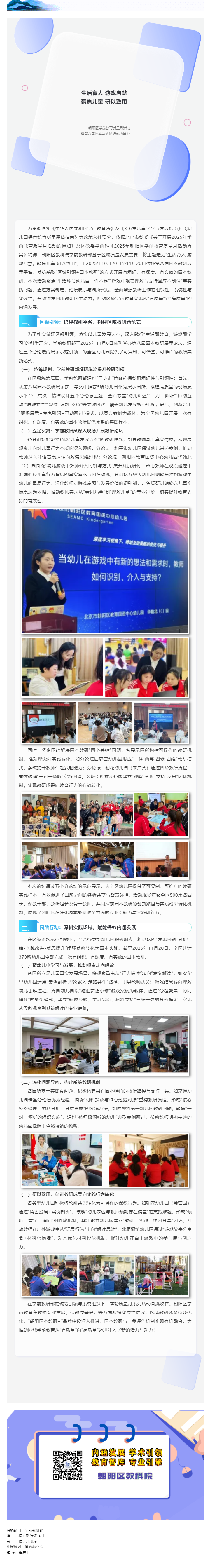 生活育人 游戏启慧,聚焦儿童 研以致用——朝阳区学前教育质量月活动暨第八届园本教研论坛成功举办