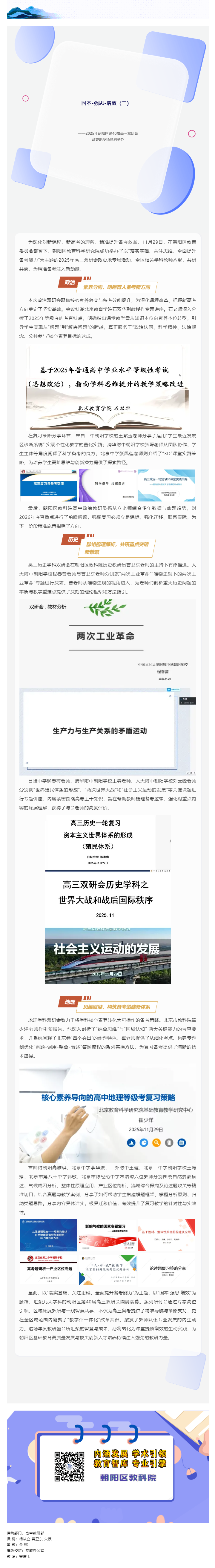 固本·强思·增效(三)——2025年朝阳区第40届高三双研会政史地专场顺利举办