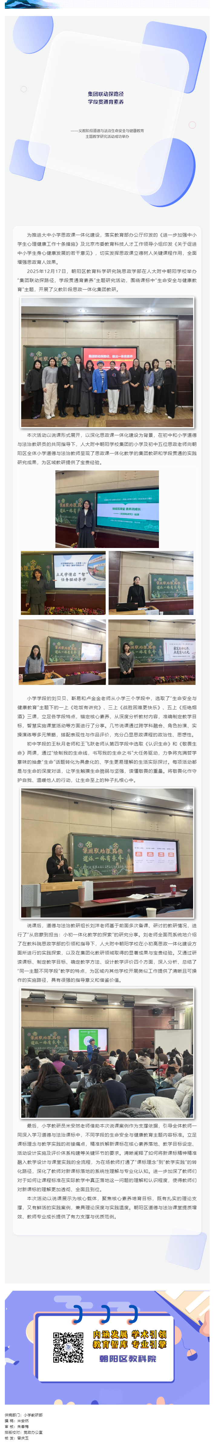 集团联动探路径 学段贯通育素养——义教阶段道德与法治生命安全与健康教育主题教学研究活动成功举办