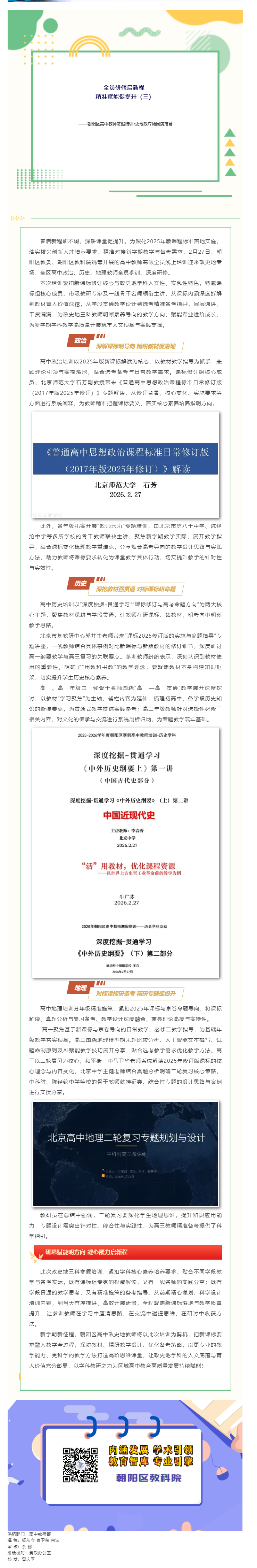 全员研修启新程 精准赋能促提升(三)——朝阳区高中教师寒假培训·史地政专场圆满落幕