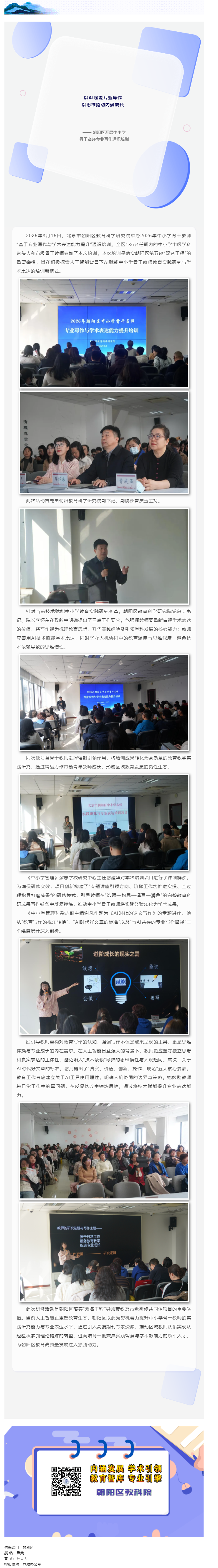 以AI赋能专业写作 以思维驱动内涵成长—— 朝阳区开展中小学骨干名师专业写作通识培训