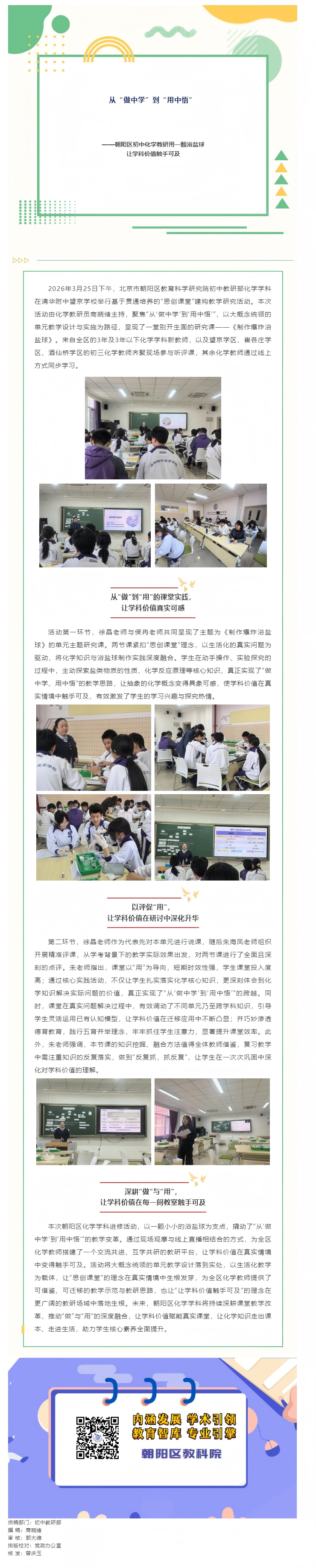 从“做中学”到“用中悟”——朝阳区初中化学教研用一颗浴盐球让学科价值触手可及